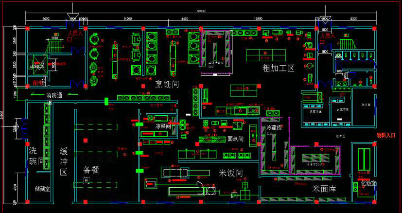 對廚房進行綜合分析,設(shè)計時確保廚房設(shè)備選配整體功能不缺項.整體功能匹配科學(xué)合理。對于中小廚房保證整體動能完備比較難的。主要設(shè)備和配套設(shè)備要配置合理,不受顧此失彼,影響整體功能??刹扇」に嚹M的方法,從原料擇洗開始,到改刀、熟制、裝盤、傳菜上桌的工藝過程要模擬演練一遍.是否有加工能力不足或多余的情況,適當增減設(shè)備,或變通設(shè)備配置。