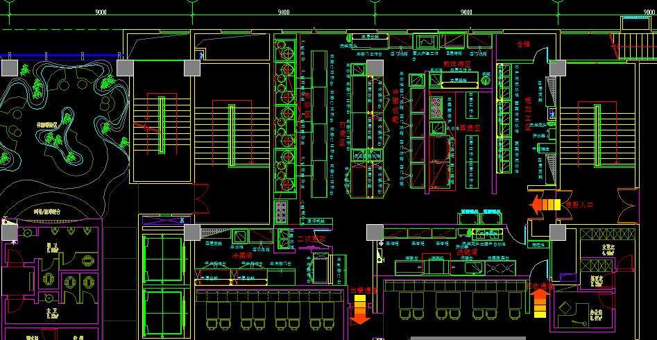 要先對(duì)食堂廚房,以經(jīng)營(yíng)方向與廚房設(shè)計(jì)規(guī)格要求,明確廚房面積大小、建筑結(jié)構(gòu)、門(mén)窗位置、餐廳位置,以及已有煙道、水電設(shè)施位置、廚房外圍環(huán)境等進(jìn)行詳細(xì)的平面圖設(shè)計(jì);區(qū)域劃分總是要先大后小,先劃分非食處理區(qū)、食品處理區(qū)、清潔操作區(qū)等大的工作區(qū),后將更衣室、庫(kù)房、辦公室、衛(wèi)生間等非食品處理工作間詳細(xì)劃分;在期間要考慮通行順暢的問(wèn)題,區(qū)域劃分以主通道位置與走向?yàn)橹鞲擅},貫穿廚房,連通其他工作間,按照工藝順序確定它的位置和走向。