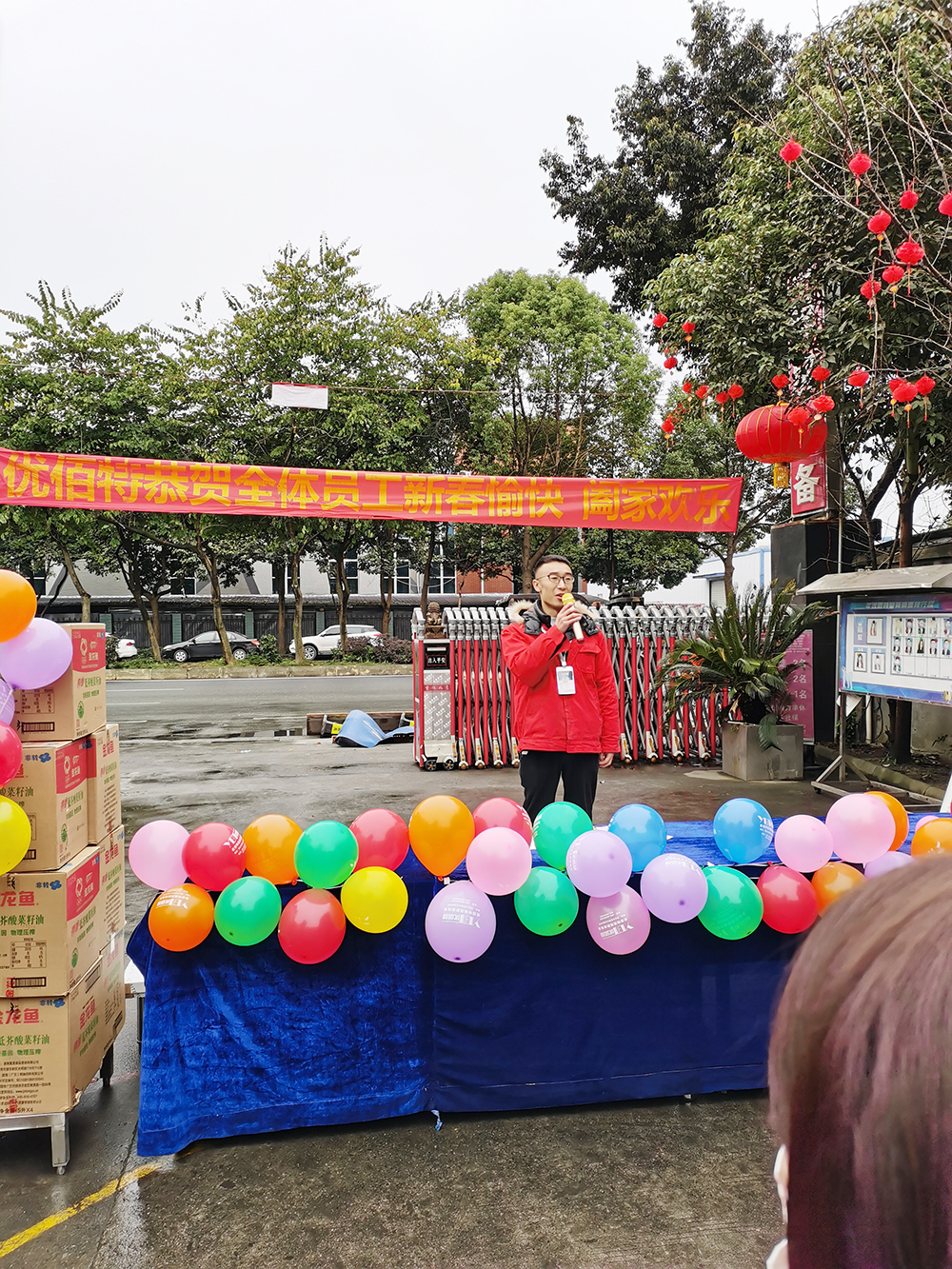 此時(shí)的優(yōu)佰特廠區(qū)已是張燈結(jié)彩,彩旗飄飄,獎(jiǎng)品堆積如山,處處充滿了迎接新春的節(jié)日氣氛!