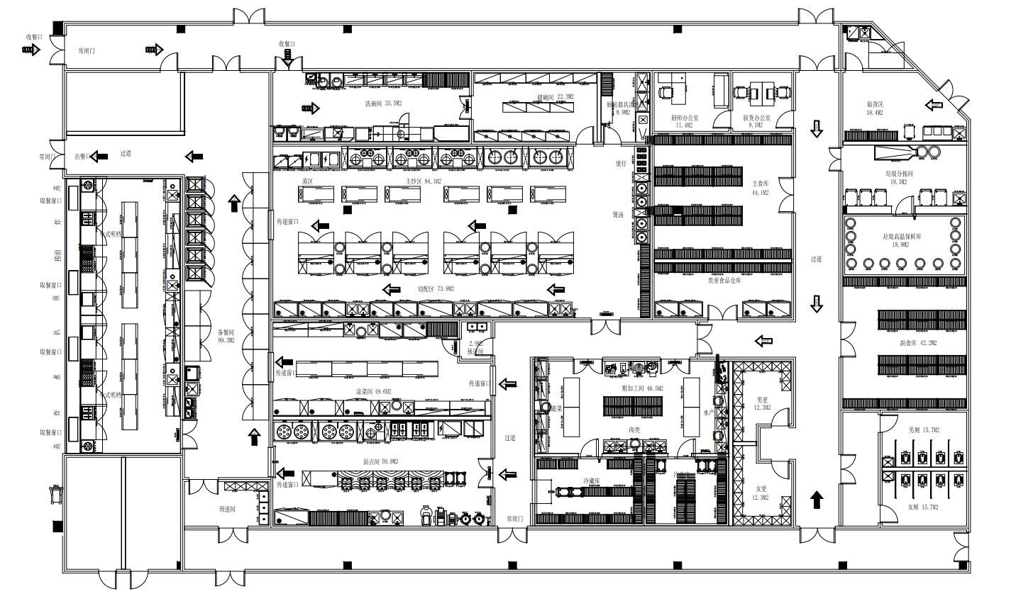 為適應(yīng)市場的快速發(fā)展,餐飲業(yè)吸收先進(jìn)經(jīng)驗(yàn),在經(jīng)營理念、經(jīng)營模式、管理模式等方面不斷創(chuàng)新。廚房工程設(shè)計(jì)和管理人員也時(shí)刻關(guān)注市場的趨勢,更注重效率、效益。近年來,又稱中央廚房的配送加工中心被熱議,提出了中餐產(chǎn)業(yè)化的新理念和運(yùn)營模式,吸引了餐飲業(yè)進(jìn)行產(chǎn)業(yè)革命的理念。中央廚房負(fù)責(zé)前期加工制作,為多家餐廳、半成品或凈菜配送所需的成品,餐廳負(fù)責(zé)出餐服務(wù)。前端產(chǎn)業(yè)鏈的中央廚房將分散的餐廳連接在一起,中央廚房最終發(fā)展到為家庭提供全方位的服務(wù),將引發(fā)餐飲行業(yè)的產(chǎn)業(yè)革命。