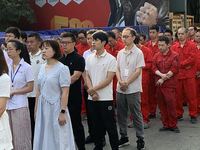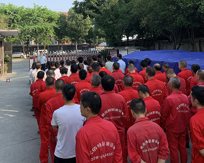 全體員工都排好整齊的隊(duì)伍,準(zhǔn)備本次會(huì)議的召開(kāi)。
