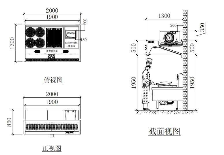 1.一體煙罩集前補新風(fēng)或風(fēng)幕、LED 照明、凈化、排風(fēng)、智能升降于一體。且具備耐溫、耐酸堿、阻燃、耐磨、耐拉等功能。有良好的防火性能和良好的機械強度。