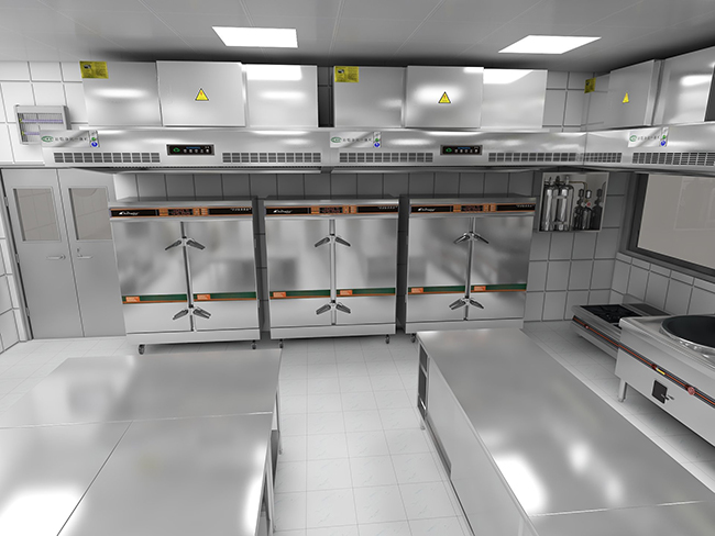 3、按生熟類別安排除加工類別相關(guān)外,還有生熟的類別,如把需要排煙的工作間安排在相近的位置,便于排煙罩和管道的安裝。當(dāng)面積有限時,把熟制設(shè)備,如灶臺、蒸飯柜、烤箱等安排在一個工作間內(nèi),便于排煙和溫度控制。為適應(yīng)市場需求采取的新舉措,例如,明檔、明廚,則有些流程就要做一些調(diào)整,兼顧相關(guān)位置,形成有機的聯(lián)系。