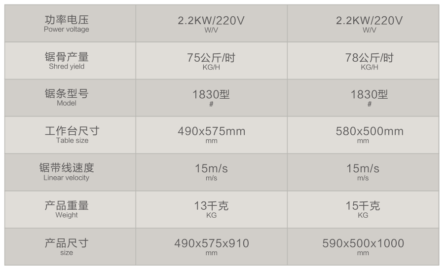 精裝鋸骨機(jī)外形簡潔美觀,結(jié)構(gòu)設(shè)計合理人性化,操作簡單。采用進(jìn)口鋸條,高強(qiáng)度高韌性,可以加工各種骨類、凍貨類等產(chǎn)品。原料切割厚度可調(diào),操作便捷,是各類食品加工企業(yè)、市場餐廳、學(xué)校、食堂等場所的最佳選擇